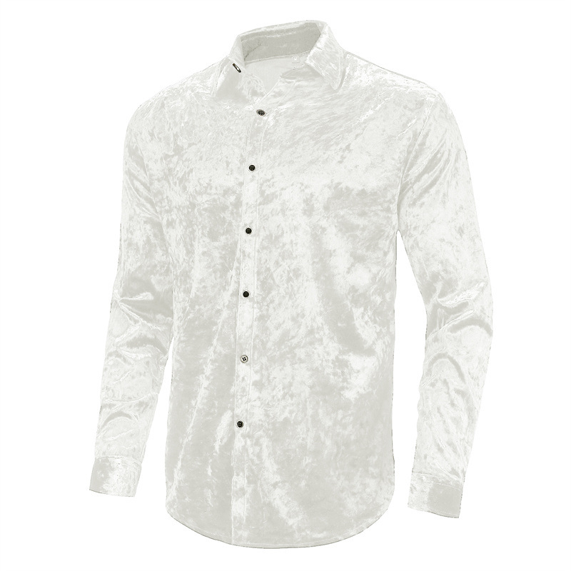 [Shirt Style]High Quality: Men's dress shirts are made of high-quality velvet fabric, which ensures that the button down shirts are comfortable, breathable, soft and smooth.[Long Sleeve Shirt Design]: Men's casual slim fit button down shirt, exquisite velvet fabric solid color design, shirt with full button closure, lapel collar, and 2 real buttons on the cuffs, easy to wear.mens button down long sleeve shirts is best gift for you dad,son,husband.[Shirt Match moment]:Mens velvet shirt has a fashionable and casual design, and the beautiful colors complement each other with formal trousers, jeans, casual pants, jackets, etc., and are colorful. Casual shiny velvet long-sleeve shirt, soft and light fabric, wear mens dress shirts to enjoy romantic and eye-catching party time.[Occasion]: Men's dress shirts are available in white blue red black gray green and other colors, very suitable for casual, daily, business wear, this is the best casual shirt for men's wardrobe. This stylish and handsome velvet long sleeve shirt is the best holiday gift choice for husband, father, son and male friends on Thanksgiving Christmas.